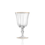 Introduced in 1977, this elegant collection remains a versatile choice for any occasion. The transparent version highlights the purity of the glass and its refined optical pattern. A coloured version is also available: the flute and water glass are monochromatic, while the wine glass features a transparent bowl paired with a coloured stem.