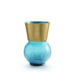The Basilio vases stand out with a luxurious, elegant, and luminous look. A large band of precious gold leaf highlights the colors and patterns of the underlying glass, creating a harmonious ensemble inspired by Russian tradition. Available in twelve colors and two sizes, perfect for stylishly enhancing any space or holding a bouquet. Gently dust the gold leaf and avoid detergents on it; the rest of the vase can be cleaned with water, neutral soap, or specialized glass cleaners.